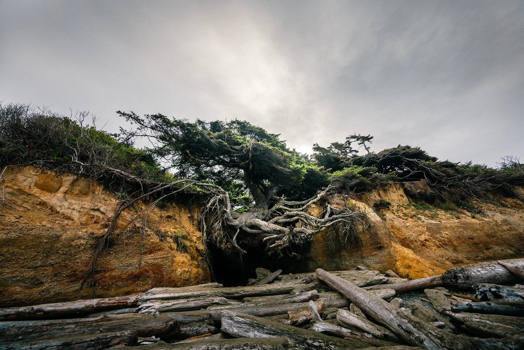 Found along the Olympic Peninsula, the roots of a Sitka spruce named the Kaloloch Tree of Life, clings to the sides of an eroding coastal bluff. For whatever reason, maybe out of spite, the tree continues to stand against all odds. Due to a storm in early 2025, the tree experienced structural damage causing it to sink lower.
